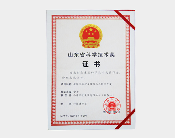 2012年山东省科学技术奖证书