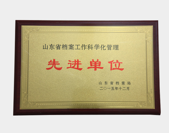 2015年度山东省档案工作科学化管理先进单位