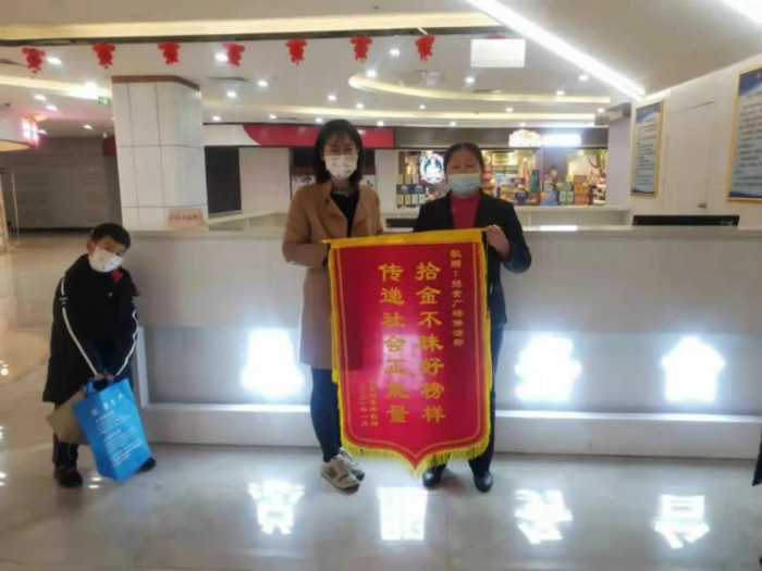 2020年12月5日,金都招远黄金珠宝首饰城保洁员张秀丽在北门停车场例行卫生清理时,捡到一块价值过万的手表,她立即主动上交公司,通过查看监控、播音等方式将手表及时归还失主。2021年1月19日的上午失主将绣有“拾金不昧,品德高尚”的锦旗送到了张秀丽手中,对NG娱乐人拾金不昧的行为表示赞赏。