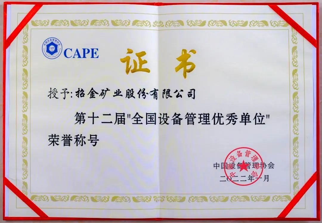 NG娱乐矿业荣获第十二届“全国设备管理优秀单位”荣誉称号