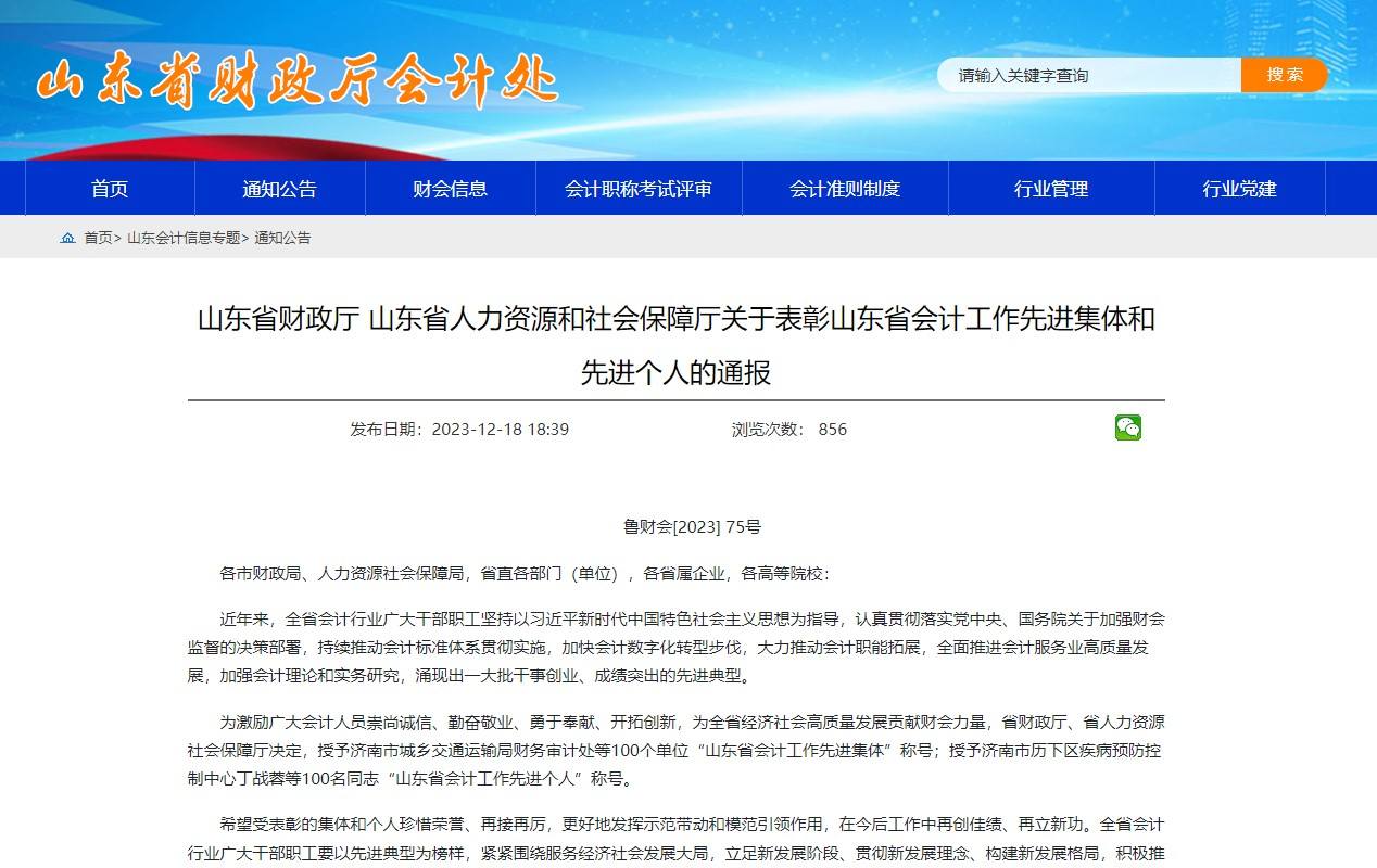 NG娱乐集团获得“山东省会计工作先进集体”荣誉称号